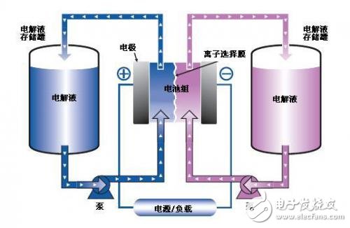 人們不斷尋找正極和負(fù)極材料,提升能量密度,干電池、鎳鎘電池還是鋰電池,無論材料怎么升級(jí),傳統(tǒng)電池對(duì)活性物質(zhì)的利用率很低,能夠產(chǎn)生電能的物質(zhì)被包裹在必須的非活性物質(zhì)之中。在常見的鋰電池里面,鋰材料只含電池重量的2%左右,這些非活性物質(zhì)增加了電池成本,降低了活性物質(zhì)的利用率。因?yàn)閭鹘y(tǒng)電池的這些弱點(diǎn),誕生了液流電池。液流電池可以視為一個(gè)獨(dú)立的大電池,正負(fù)極電解液分別存放,集中反應(yīng)產(chǎn)生電能。這樣無需昂貴的附加材料,可以大大提升效率。