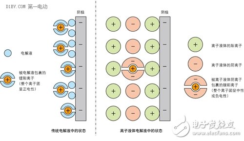 為解決這個問題,日本慶應(yīng)大學(xué)的研究人員使用與鋰離子親和力較低的離子液體,當(dāng)包裹鋰離子的離子團接近陰極時,從離子團中放出鋰離子。其結(jié)果,可以減弱電極周圍界面的強度。