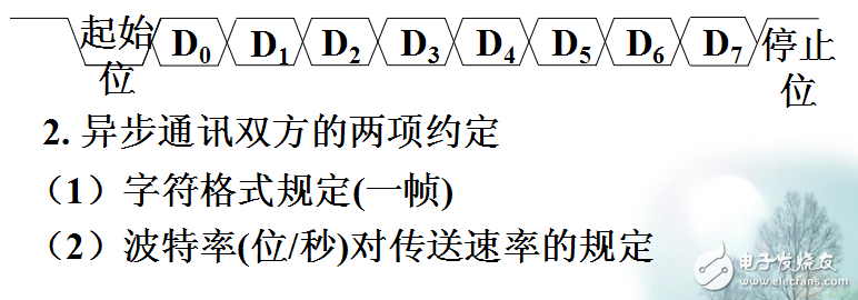 以字符為傳送單位用起始位和停止位標(biāo)識每個字符的開始和結(jié)束字符間隔不固定,只需字符傳送時同步。