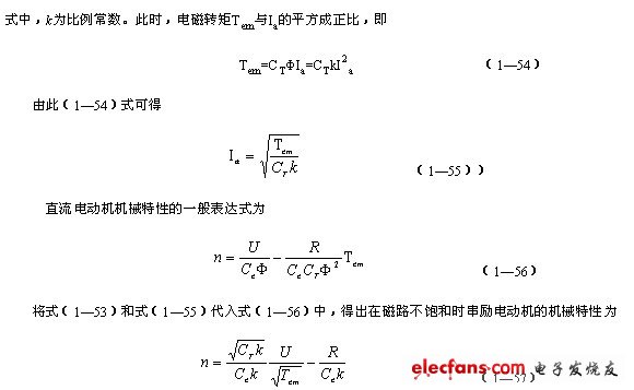 當(dāng)負(fù)載電流較大時(shí),磁路已經(jīng)飽和,磁通基本不隨負(fù)載電流變化,串勵(lì)電動(dòng)機(jī)的工作特性與并勵(lì)電動(dòng)機(jī)相同。