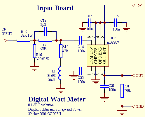 The AD8307 is SMD SO-8, the extra input board is for a later project (SWR bridge), more about this next year.