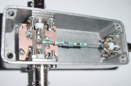 Here is my simple homemade -40dB tap, using 3 BNC connectors a small cheap box and a few resistors.