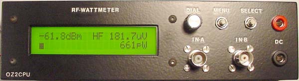 The display, shows dBm from -60 to +30dBm, RF Voltage and RF Power and Bargraph in 1db step.