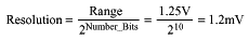 DAC Selection: If a 10-bit DAC is used to set a voltage between 0 and 1.25V, the control resolution will be: