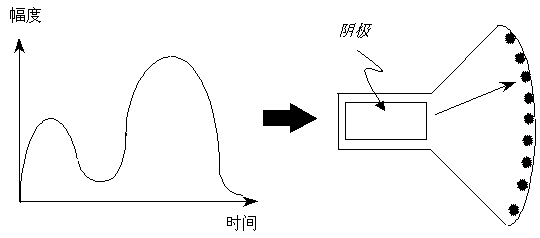 當負極性圖像信號加入陰極K時,能控制柵陰極電壓的變化,控制電子束流Ik的強弱,從而控制電子束掃描熒光屏各點的亮度,在熒光屏還原成像。若加在陰極的圖像信號電壓越高,則柵陰極電壓越負,即柵、陰極間負電壓越大,電子束流越弱,相應(yīng)熒光粉點越暗。反之,若陰極所加圖像信號電壓越低,電子束流越強,相應(yīng)熒光粉點就越亮,正好與發(fā)送端圖像相應(yīng)的像素亮暗一致。電子束掃描整個熒光屏復合成完整圖像。