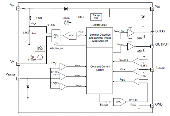 12 非隔離式恒流LED驅(qū)動(dòng)器可以串接3.5v的LED燈珠17~24個(gè),非常靈活好用。
