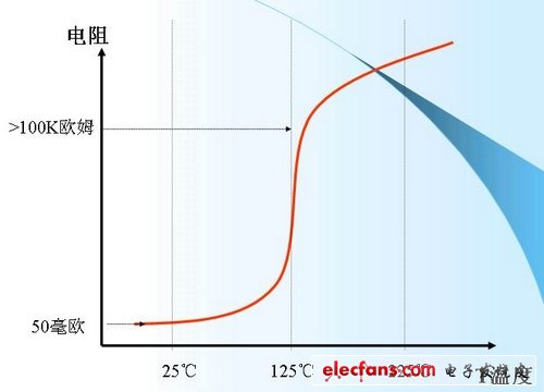 冷態(tài)PTC電阻值僅幾十毫歐,而熱態(tài)電阻值可達(dá)幾百千歐姆。