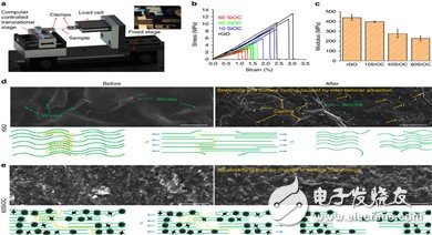 ?。╠) rGO紙在失效前表現(xiàn)出拉伸現(xiàn)象和石墨烯片層的重新排列。