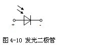 發(fā)光二極管的符號(hào)如圖4-10所示。它的伏安特性和普通二極管相似,死區(qū)電壓為0.9~1.1V,其正向工作電壓為1.5~2.5V,工作電流為5~15mA。反向擊穿電壓較低,一般小于10V。