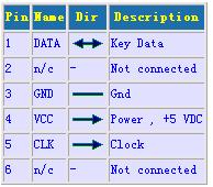 PS2鍵盤接口引腳定義圖