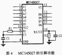 MC145027的引腳功能和外部電路如圖4所示,其功能框圖如圖5所示。