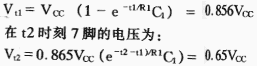 。當編碼信號從數(shù)據(jù)輸入端(9腳)輸入時,6 腳將出現(xiàn)與9腳相同的信號,該信號經(jīng)R1、C1積分電路積分后由7腳送至數(shù)據(jù)提取電路,數(shù)據(jù)提取電路在輸入信號的每一個上升沿通過檢測 7腳的狀態(tài)來判斷輸入的是寬脈沖還是窄脈沖。圖6給出了6腳和7腳信號的波形,假定數(shù)據(jù)輸入端輸入的是“開路”編碼(即一個寬脈沖和一個窄脈沖),寬脈沖開始于t0時刻,結束于t1時刻,窄脈沖開始于t2時刻,結束于t3時刻,整個編碼于t4時刻結束。那么,在t1時刻,7腳的電壓為: