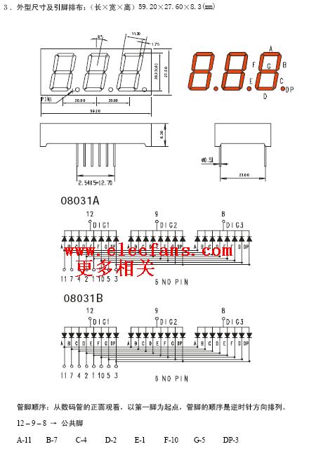 三位數(shù)碼管引腳圖以及封裝尺寸