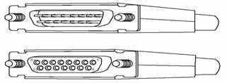 在路由器中所能支持的同步串行端口類型比較多,如Cisco系統(tǒng)就可以支持5種不同類型的接口,分別是:EIA/TIA-232接口、EIA/TIA- 449接口、V.35接口、X.21串行電纜總成和EIA-530接口,所對應的適配器圖示分別如圖12、圖13、圖14、圖15、圖16所示。要注意的一點就是,一般來說適配器連線的兩端是采用不同的外形(一般稱帶插針的一端稱之為"公頭",而帶有孔的一端通常稱之為"母頭"),但也有例外,"EIA- 530"接口兩端都是一樣的接口類型,這主要是考慮到連接的緊密性,參見圖16.其余各類接口的"公頭"為DTE(數(shù)據(jù)終端設(shè)備,Data Terminal Equipment)連接適配器,"母頭"為DCE(數(shù)據(jù)通信設(shè)備,Data Communications Equipment)連接適配器。