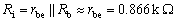 式中rb為基區(qū)體電阻,對(duì)于低頻小功率管,的rb約為200W 左右。re為發(fā)射結(jié)電阻。(1+b)re是re折算到基極回路的等效電阻,根據(jù)PN結(jié)的V-I 特性表達(dá)式,可以導(dǎo)出re的值為VT(mV)/IE(mA)。這樣,式(1)可改寫為