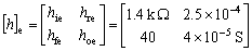 例如,對(duì)高頻小功率硅管3DG6,在IC=1mA,IB=3μA,VCE=5V時(shí)的H參數(shù),通過實(shí)驗(yàn)測(cè)得