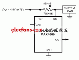 此組芯片76V的輸入電壓范圍完全與電源電壓(VCC)和共模輸入電壓(VRS+)無關(guān),最大限度地?cái)U(kuò)大了其應(yīng)用范圍。由于高側(cè)電流檢測不干擾被測負(fù)載的地線,使得MAX4080/MAX4081廣泛適用于高電壓系統(tǒng)中。